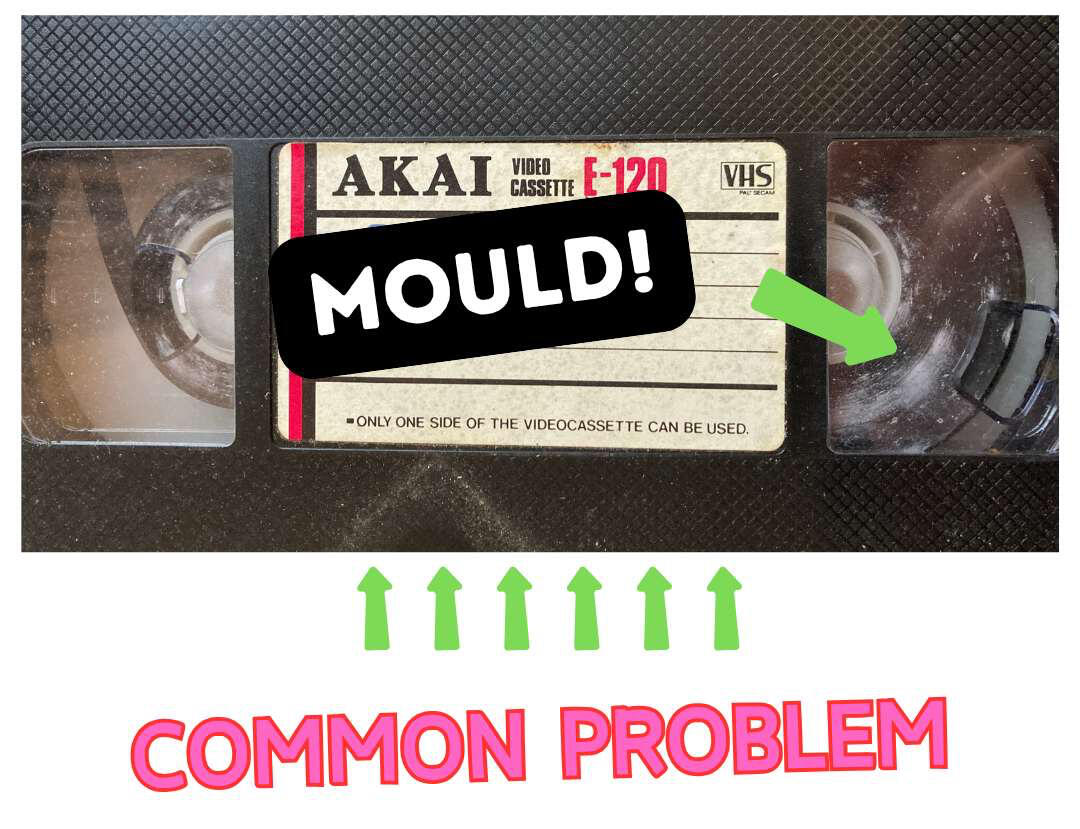 Look for white mould through the plastic and if there is a heavy build up I will have to clean the tape before digitising it. This will require an additional fee of $6 extra per tape.